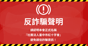 The Red Cross Society of Taichung City upholds the principles of Humanity, Fraternity, and Voluntary Sercive, and is dedicated to promoting first aid education, disaster preparedness, food bank programs, long-term care, home care services, and community care and support. Through professional training, volunteer development, and the integration of social resources, we work to improve the lives of both caregivers and care recipients, while building a friendly and resilient city. Moving forward, we will continue to embody the belief that “Where there is suffering, there is the Red Cross; where there is the Red Cross, there is hope,” connecting industries, government, academia, and social service sectors to protect and support everyone in need.